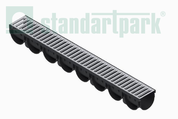 Лоток водоотводный S’park 3 пластиковый DN100 h100 с решеткой щелевой стальной оцинкованной (комплект)