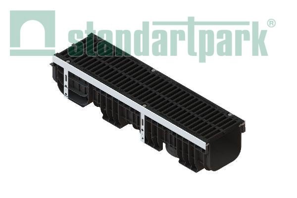 Лоток водоотводный PolyMax Drive DN200 h217 предназначен для сбора и отвода ливневых и талых вод на территориях с умеренной транспортной нагрузкой. Прочная щелевая чугунная решетка класса C250 защищает систему от крупного мусора и механических повреждений, обеспечивая долговечность и надежность.