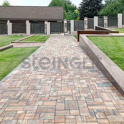 Плитка «Бавария» в оттенке «Штайн Ферро» — это выбор для тех, кто стремится к сдержанному стилю и долговечному результату. Четыре размера плит создают динамичную, но сбалансированную композицию, которая хорошо смотрится на любой площади — от частной дорожки до общественной набережной.