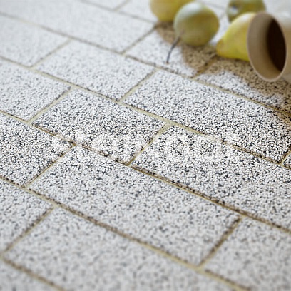 Тротуарная плитка Маринталь “Bianco Nero” — набор вытянутых камней среднего формата, подходящих для мощения пешеходных зон, парковых дорожек и дворов частных домов.