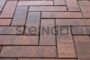 Прямоугольная плитка с пропорциями 1:3 позволяет выкладывать мощение в изящном паркетном стиле. Такой узор смотрится дорого и архитектурно строго. А минимальная фаска обеспечивает плавный ход — комфортно даже на колясках, роликах и в обуви с тонким каблуком.